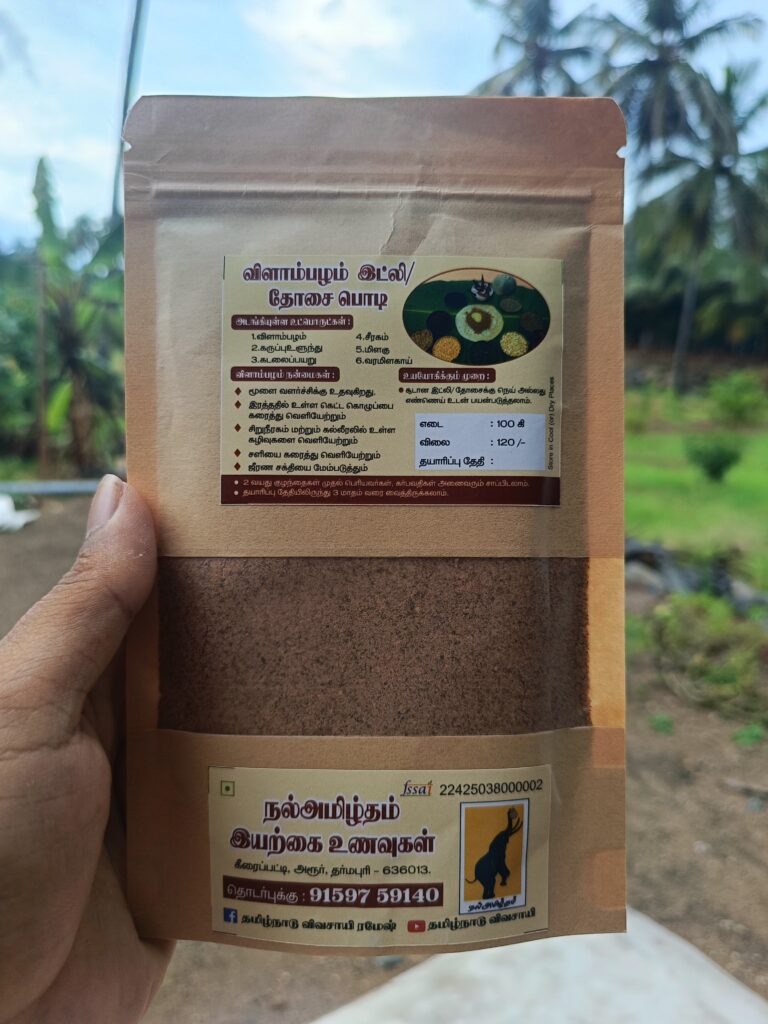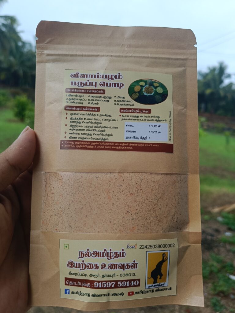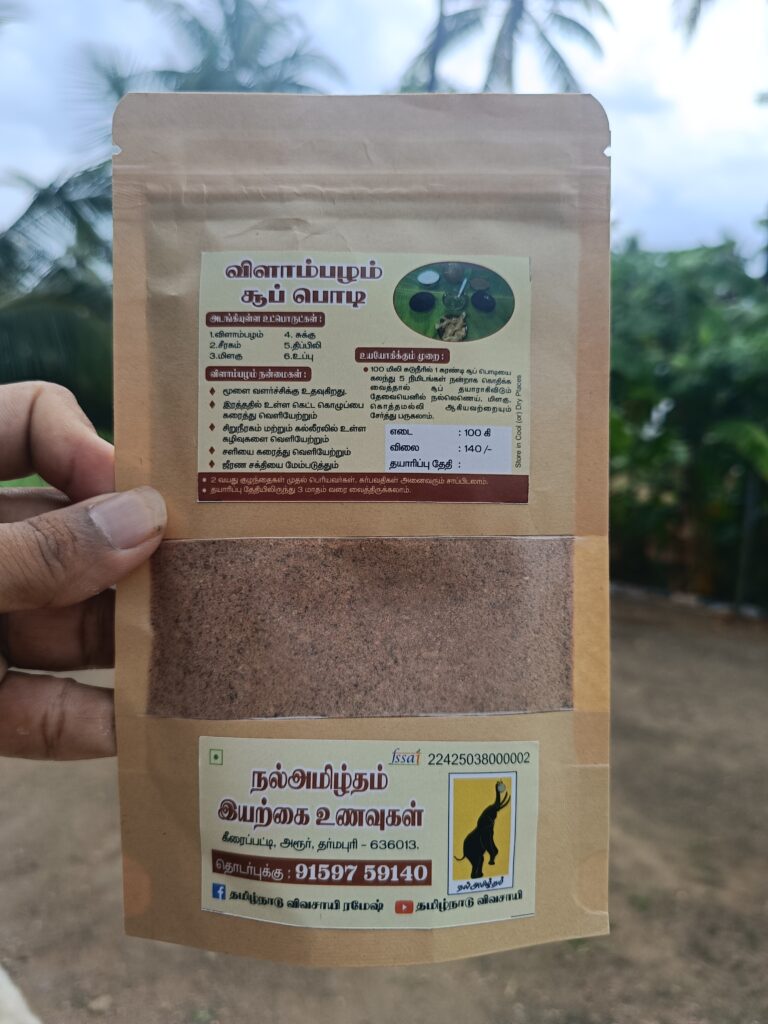 Products produced: விளாம்பழம் அல்வா, விளாம்பழ இட்லிபொடி, விளாம்பழ சூப்பொடி, விளாம்பழ ஜாம், விளாம்பழ தொக்கு, விளாம்பழ பருப்புபொடி, Halwa, Idly Podi, Jam, Paruppu Podi, Sokku Podi, Thokku, Vilampazham, and Wood Apple